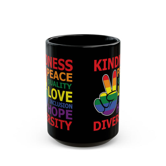 Kindness Peace Equality Love Inclusion Hope Driversity Black Mug (11oz, 15oz)