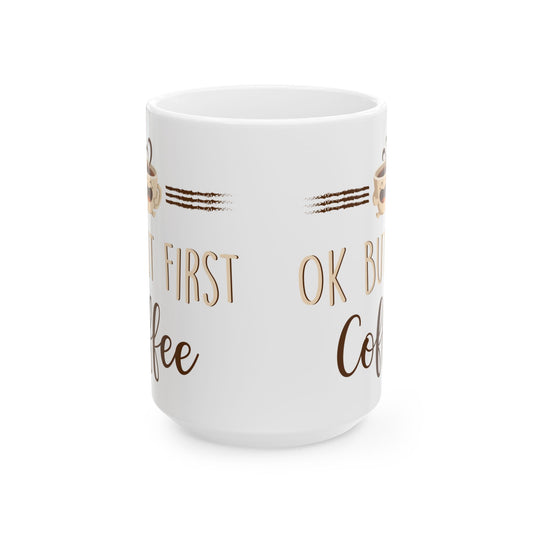 Ok But First Coffee White Mug, (11oz, 15oz)