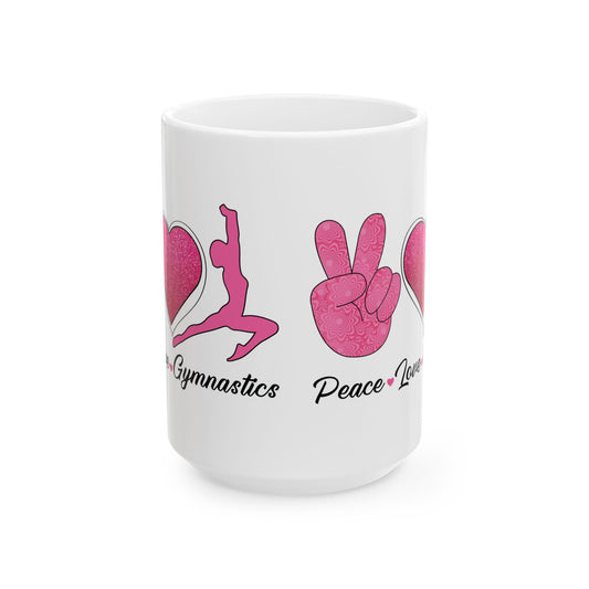 Peach Love Gymnastics White Mug, (11oz, 15oz)