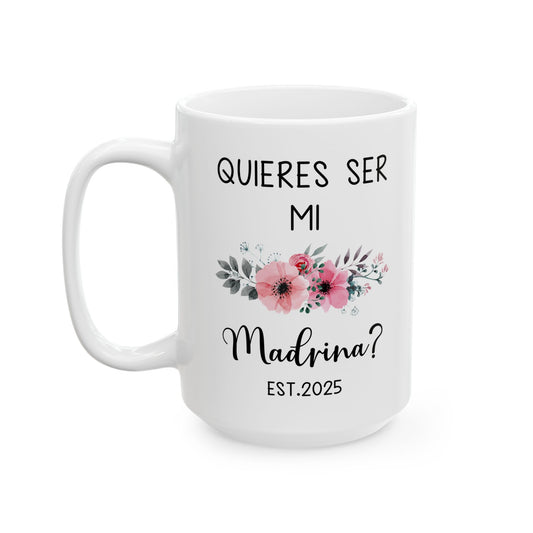 ¿Quieres Ser Mi Madrina Mug – White Godmother Proposal Gift 2025