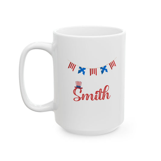4th of July Mug – White Patriotic Coffee Cup – Red White Blue Independence Day Gift – July 4th Holiday Decor for Home or Office