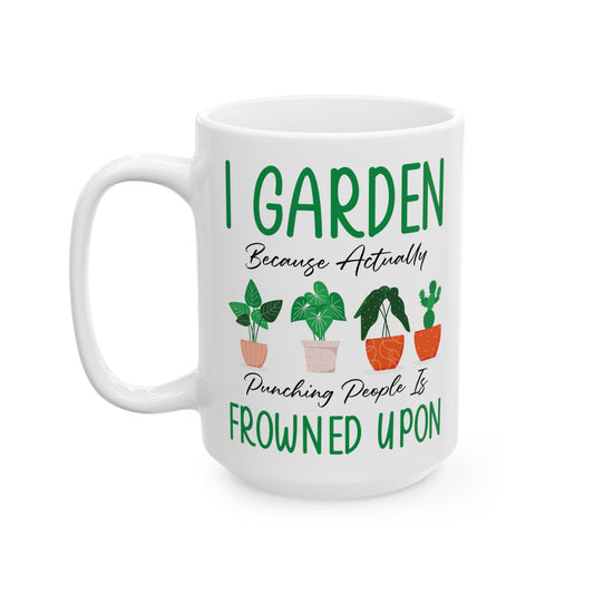 Funny Gardening Mug – White Ceramic Coffee Cup for Gardeners