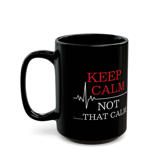 Funny Nurse Mug – Keep Calm Not That Calm Black Medical Coffee Cup with EKG Heartbeat Design