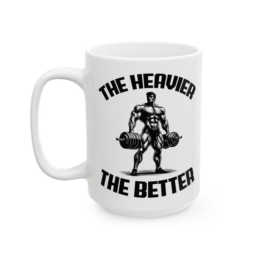 Give the Gift of Strength – Bold White Mug with The Heavier The Better Quote