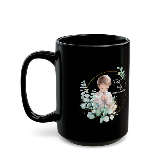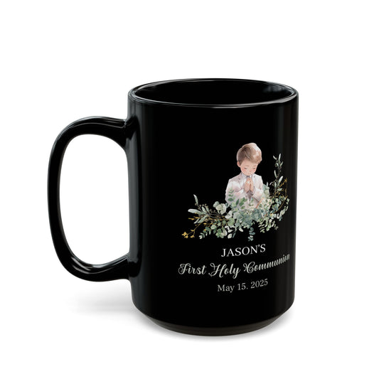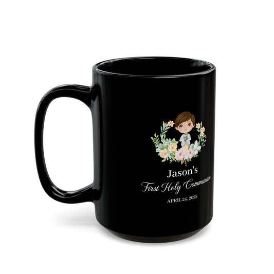 Custom Black Communion Mug for Boy – Personalized First Holy Gift