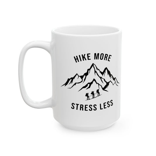 Hike More, Stress Less Ceramic Mug, (11oz, 15oz)