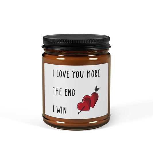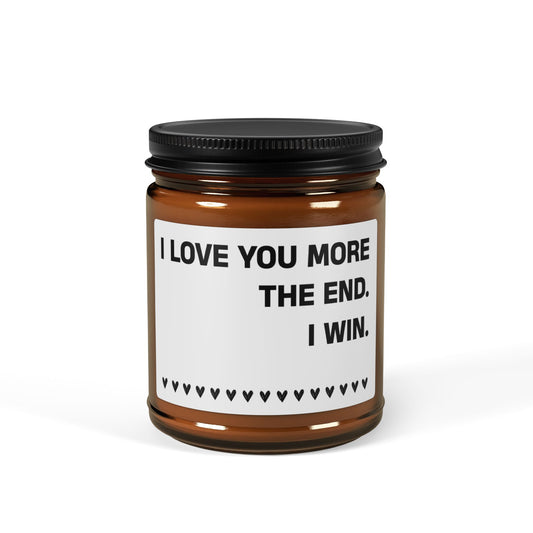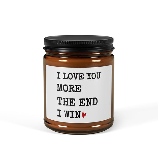 I Love You More The End I Win Candle – Romantic Soy Candle with Heart Border Funny Amber Jar Gift for Couples