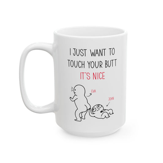 Custom I Just Want to Touch Your Butt Mug – Funny Personalized Couples Coffee Cup