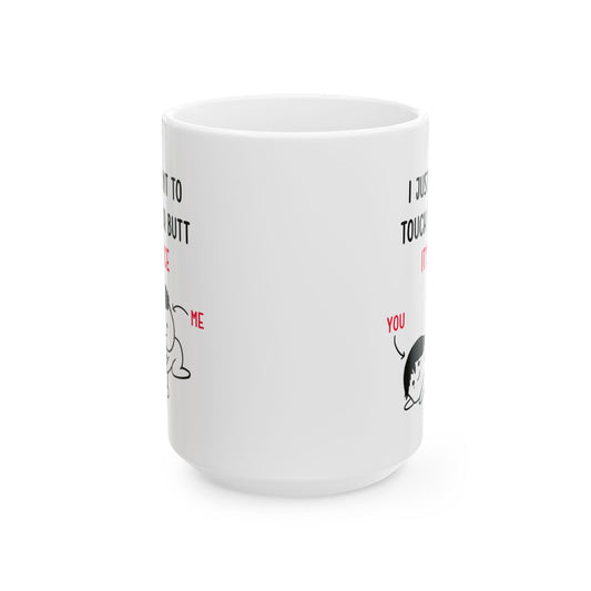 I Just Want to Touch Your Butt Mug – Funny Romantic Coffee Cup Cute Couple Gift with Cartoon Design