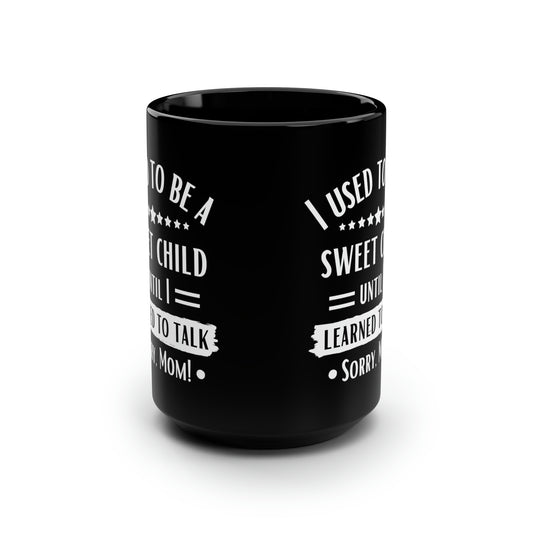 I Used to Be a Sweet Child Until I Learned to Talk Sorry Mom! Black Mug