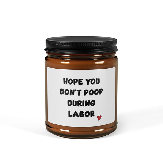 Hope you don't poop during labor, Scented Soy Candle (Multi-Size, Amber Jar)