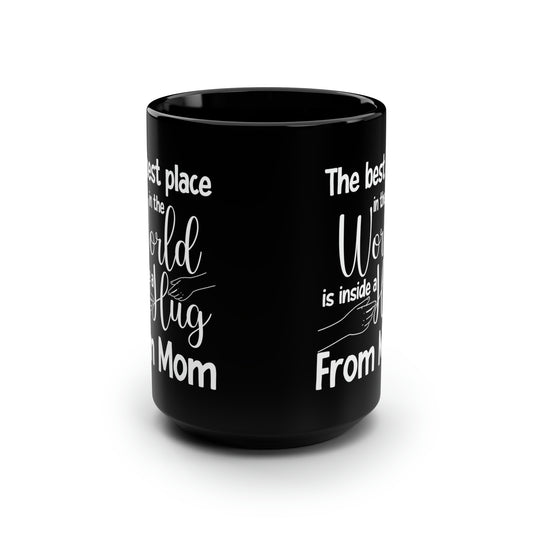 The Best Place in the World is Inside a Hug from Mom – Black Coffee Mug