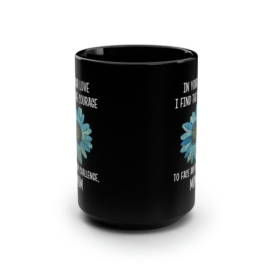 Black Ceramic Mom Mug – Courage to Face Challenges with Floral Print