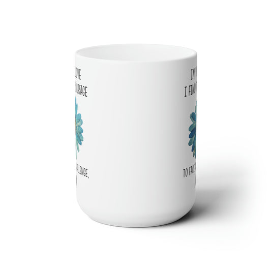 White Ceramic Mom Mug – Courage to Face Challenges with Floral Print
