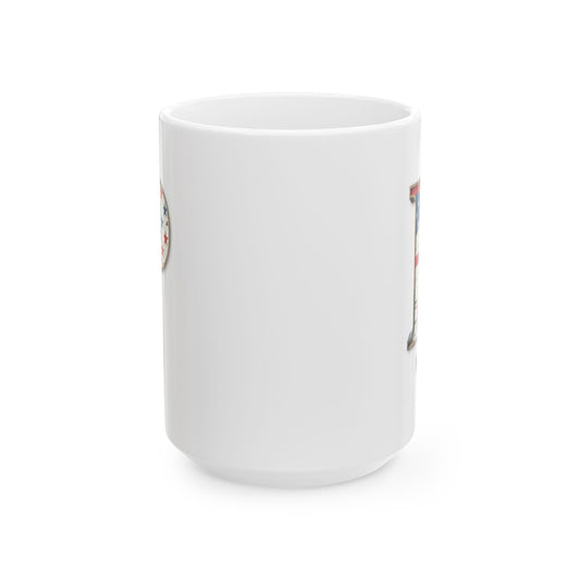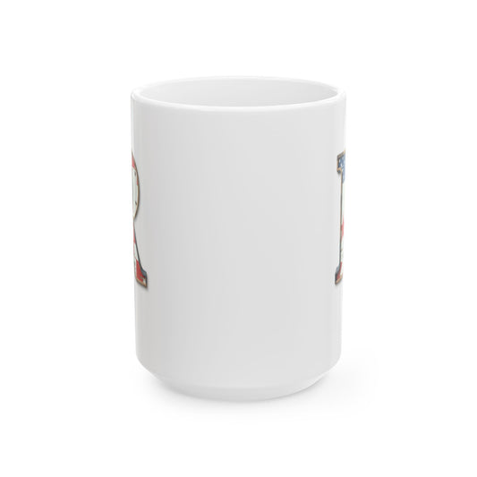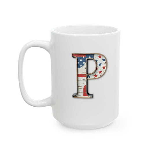 White American Flag Mug with Letter P Patriotic Initial Coffee Cup Gift for Veterans Military Families or Proud Americans