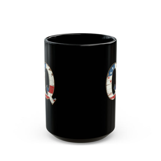 Black American Flag Mug with Letter Q and Name Quinton Personalized Patriotic Coffee Cup Gift for Men Veterans or American Flag Fans