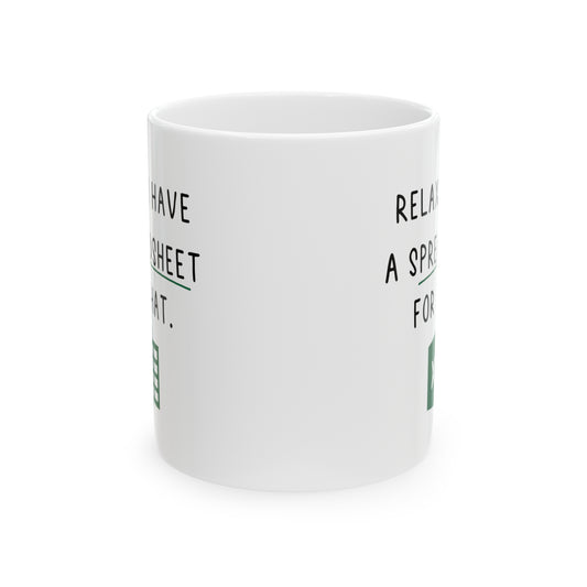 Relax I Have a Spreadsheet for That Mug – Funny Excel Lover Coffee Cup for Accountants & Office Workers
