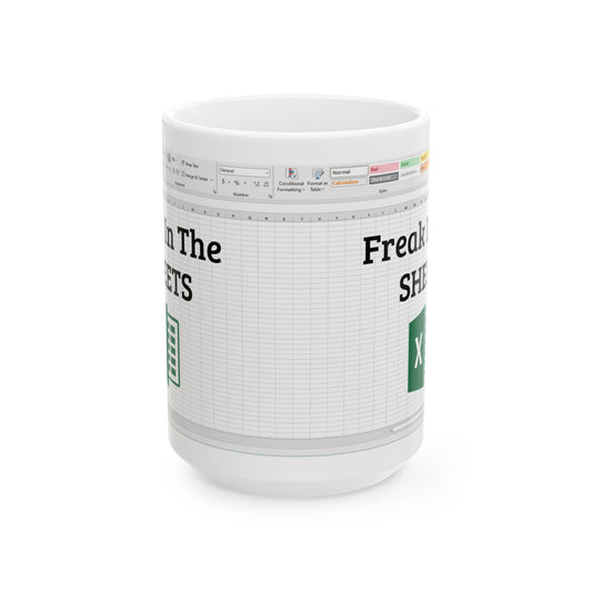 Freak in the Sheets Mug – White Ceramic with Excel Pun