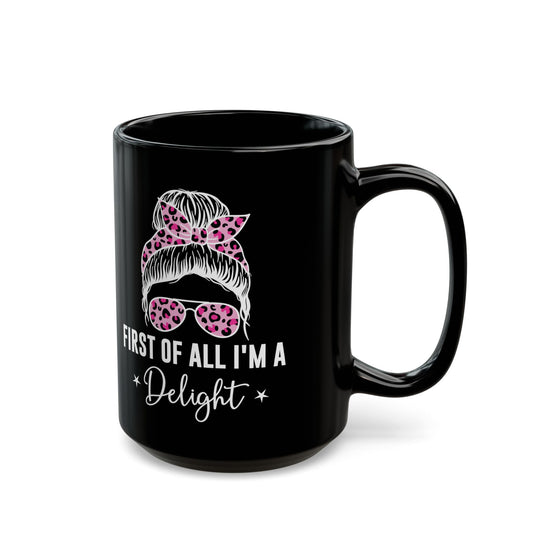 First of All, I'm a Delight – Bold Black Mug with Pink Leopard Print