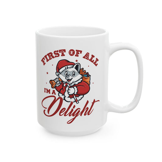 First of All, I'm a Delight Christmas Mug – White Ceramic with Festive Possum Design