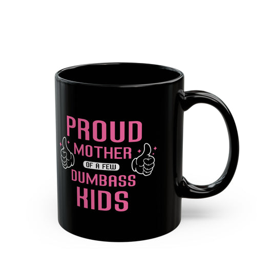Proud Mother of a Few Dumbass Kids Mug – Black with Pink Text