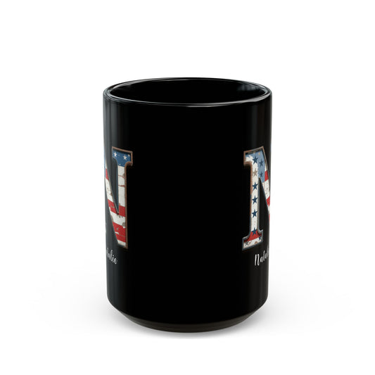 Black American Flag Mug with Letter N and Name Nathan Personalized Patriotic Coffee Cup Gift for Men Veterans or USA Flag Supporters