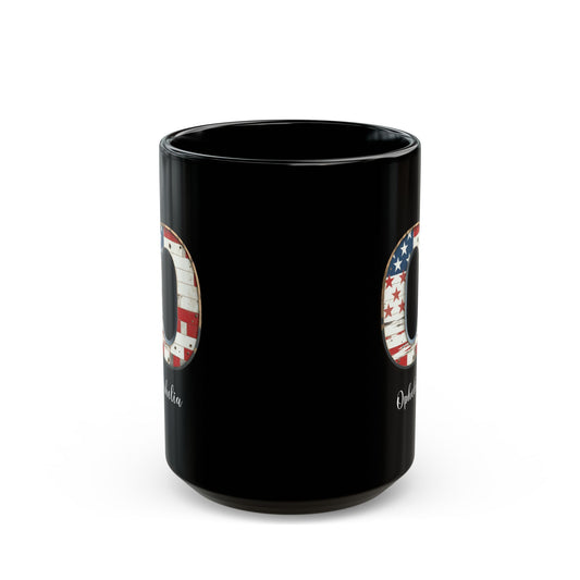 Black American Flag Mug with Letter O and Name Owen Personalized Patriotic Coffee Cup Gift for Men Veterans or Proud USA Supporters
