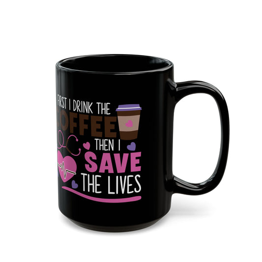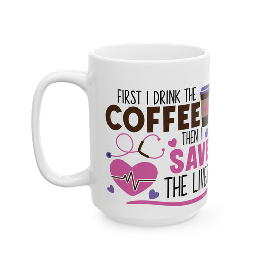 First I Drink the Coffee Then I Save the Lives Mug – Perfect Gift for Nurses