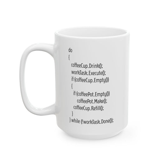 Programmer Coffee Mug – Funny Coding Loop for Developers