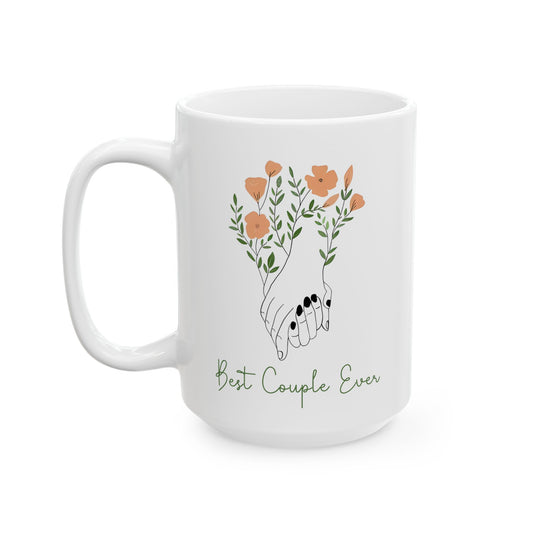 Best Couple Ever Mug – Floral Hand-Holding Illustration – Romantic Gift for Partners