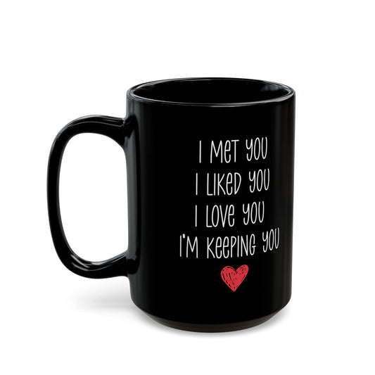 I Met You I Liked You I Love You Mug – Cute Red Heart – Romantic Black Coffee Cup