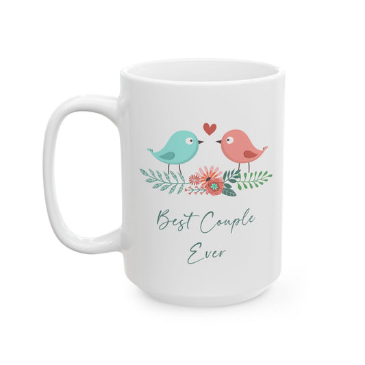Best Couple Ever Mug – Cute Lovebirds and Floral Design – Romantic Gift for Couples
