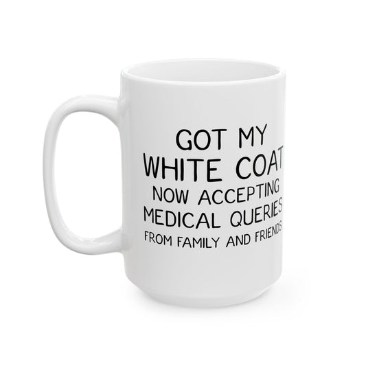 Funny White Coat Ceremony Mug – White Ceramic Mug for Med Students, Doctors, PAs