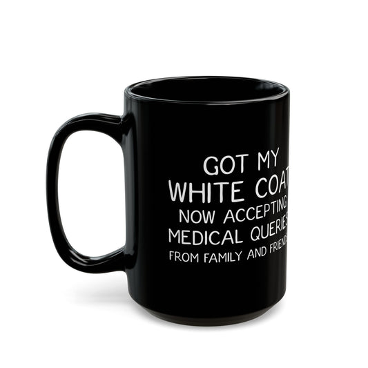 Funny White Coat Ceremony Mug – Med Student Gift, Doctor Graduation Mug, Black Ceramic Coffee Cup