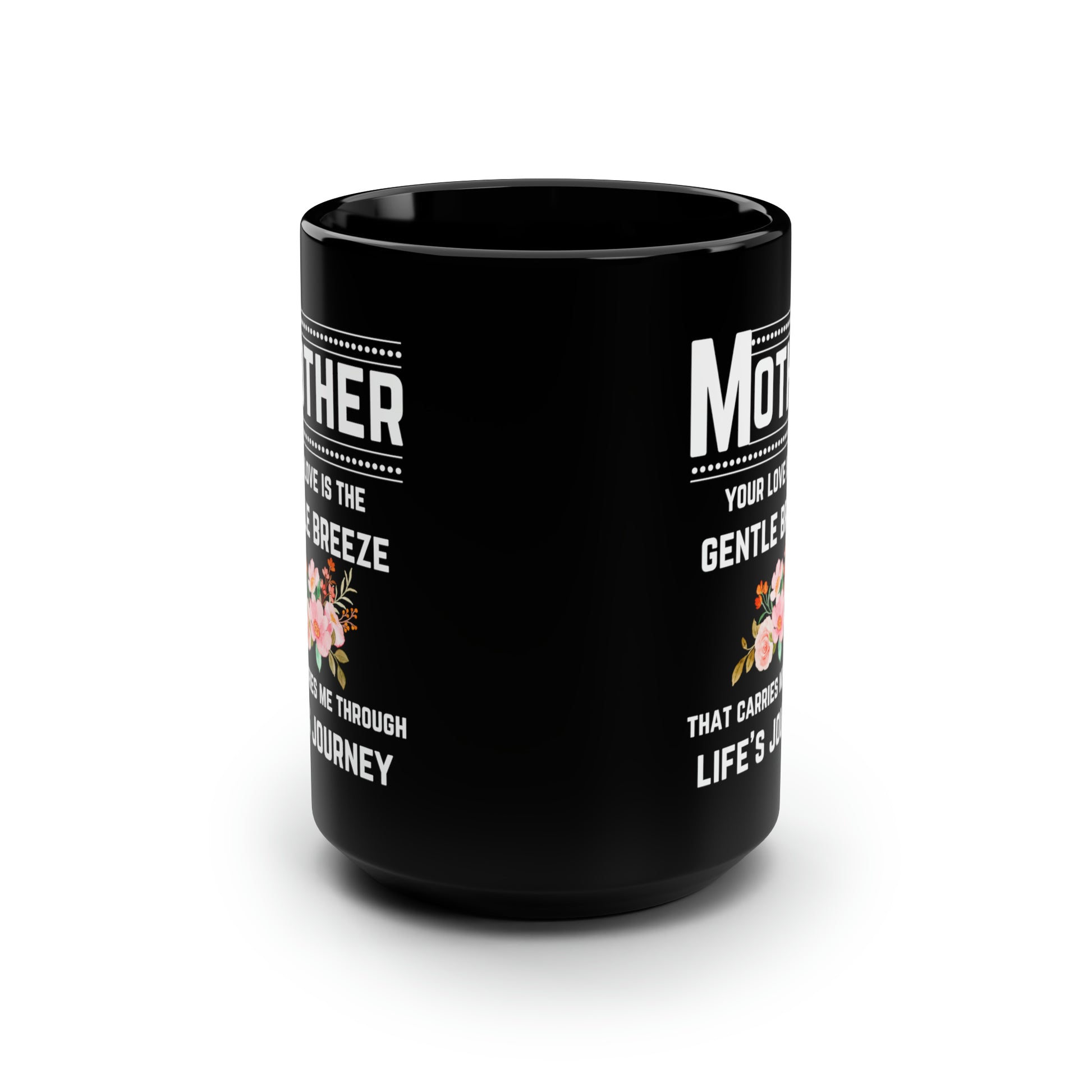 Express the unwavering love of a mother with this elegant black ceramic coffee mug. Featuring the heartfelt quote: