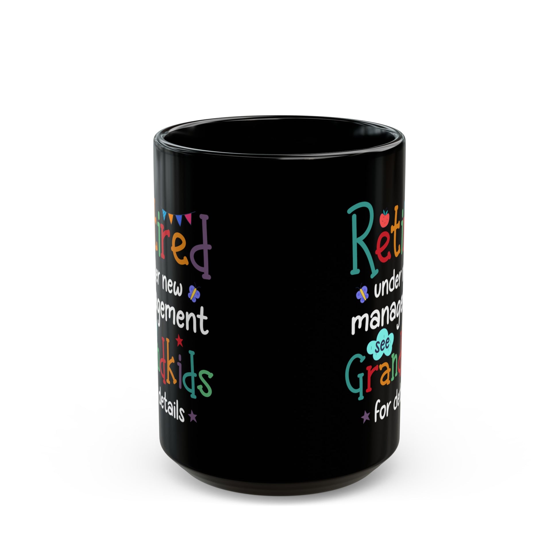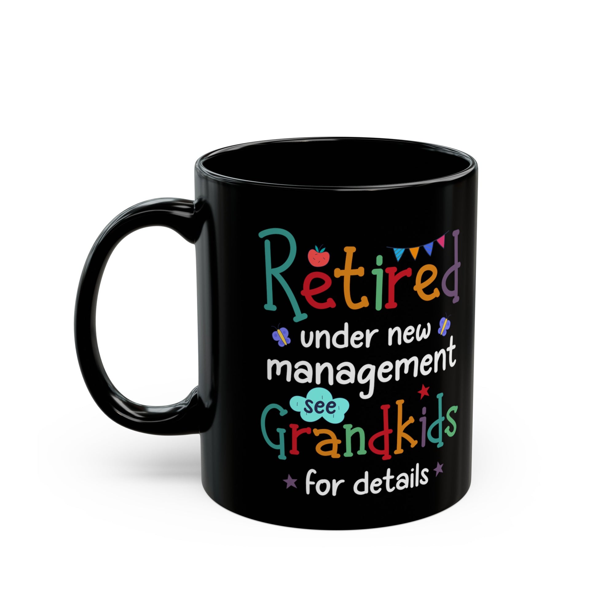Celebrate a loved one’s retirement with this vibrant and fun mug that proudly declares they are "Retired under new management." Designed with bold, colorful lettering against a sleek black background, this mug adds a touch of joy to any retiree's daily routine. It's the perfect reminder for them to kick back and enjoy life, one grandkid visit at a time.