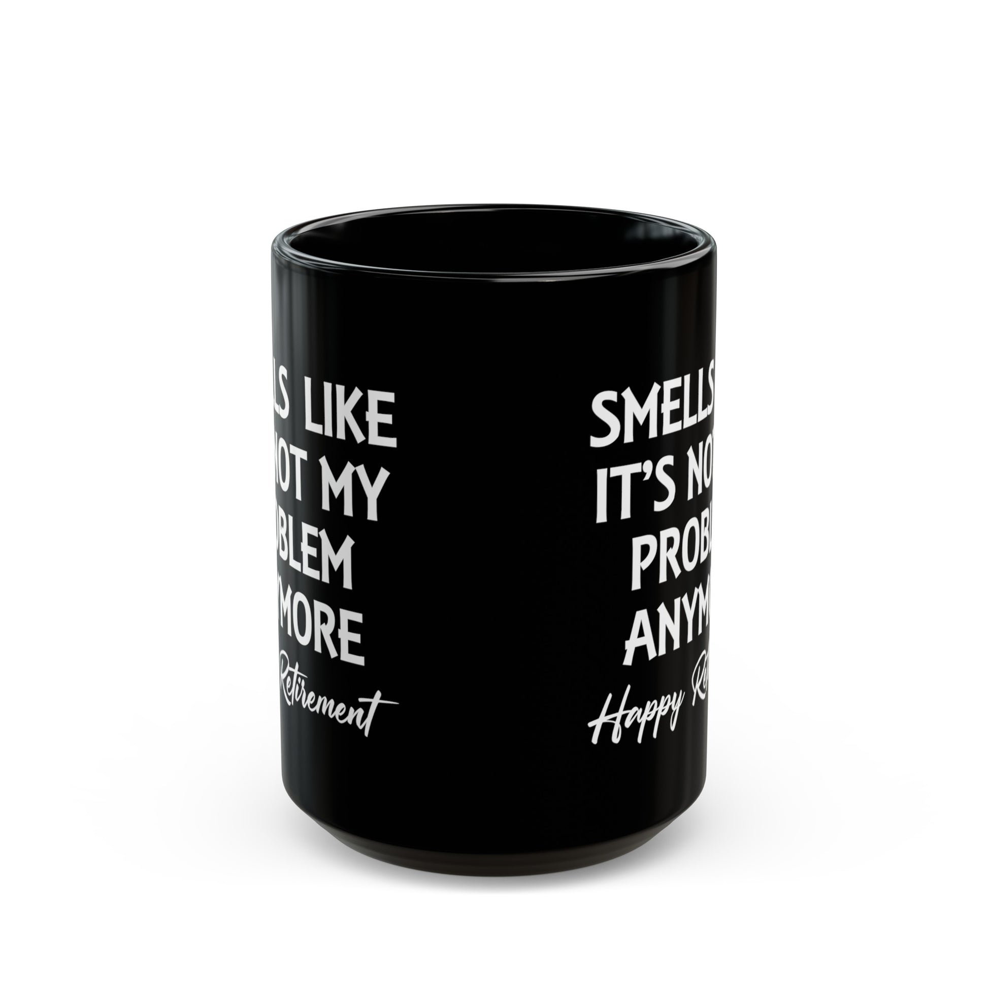 Black Retirement Mug – Smells Like It's Not My Problem Anymore