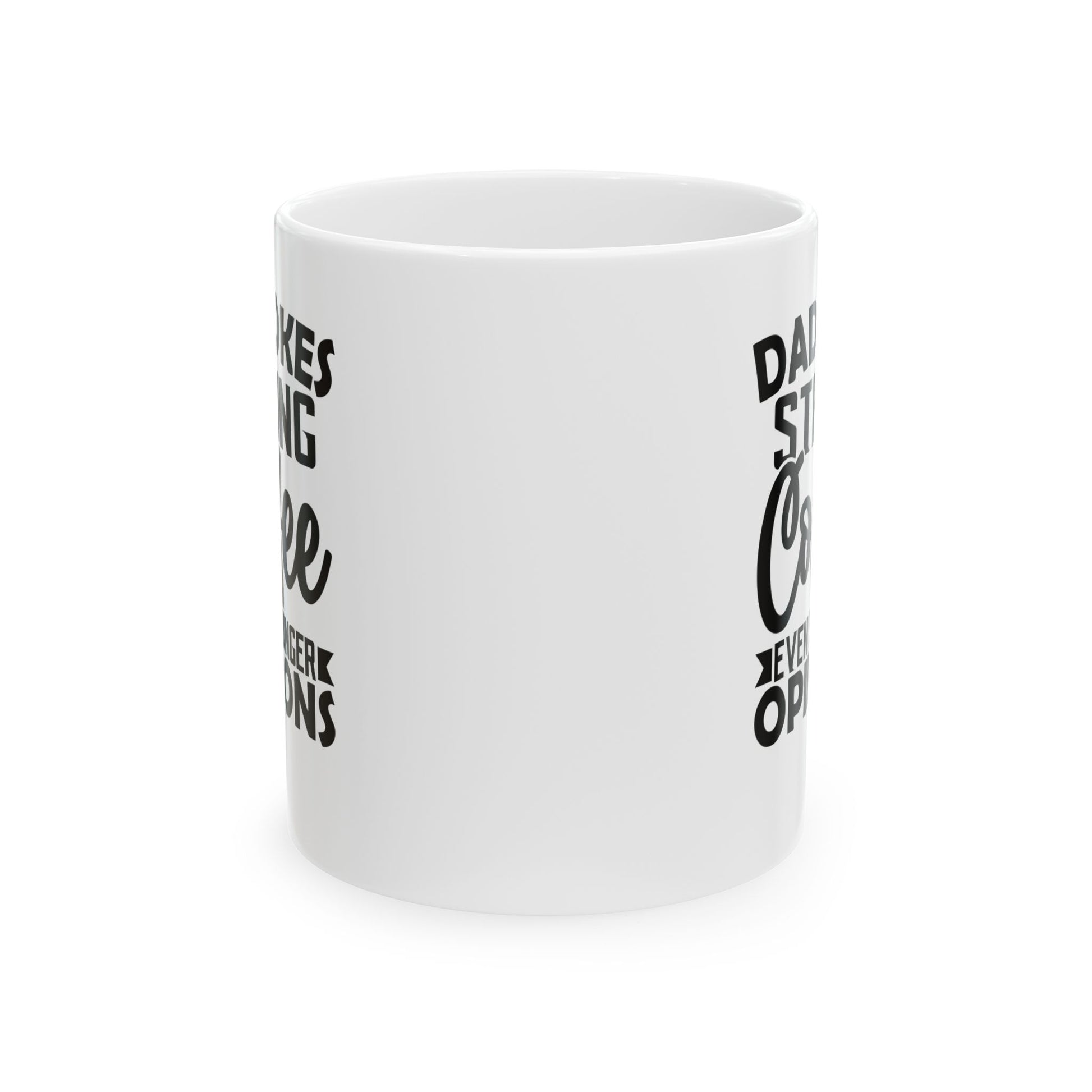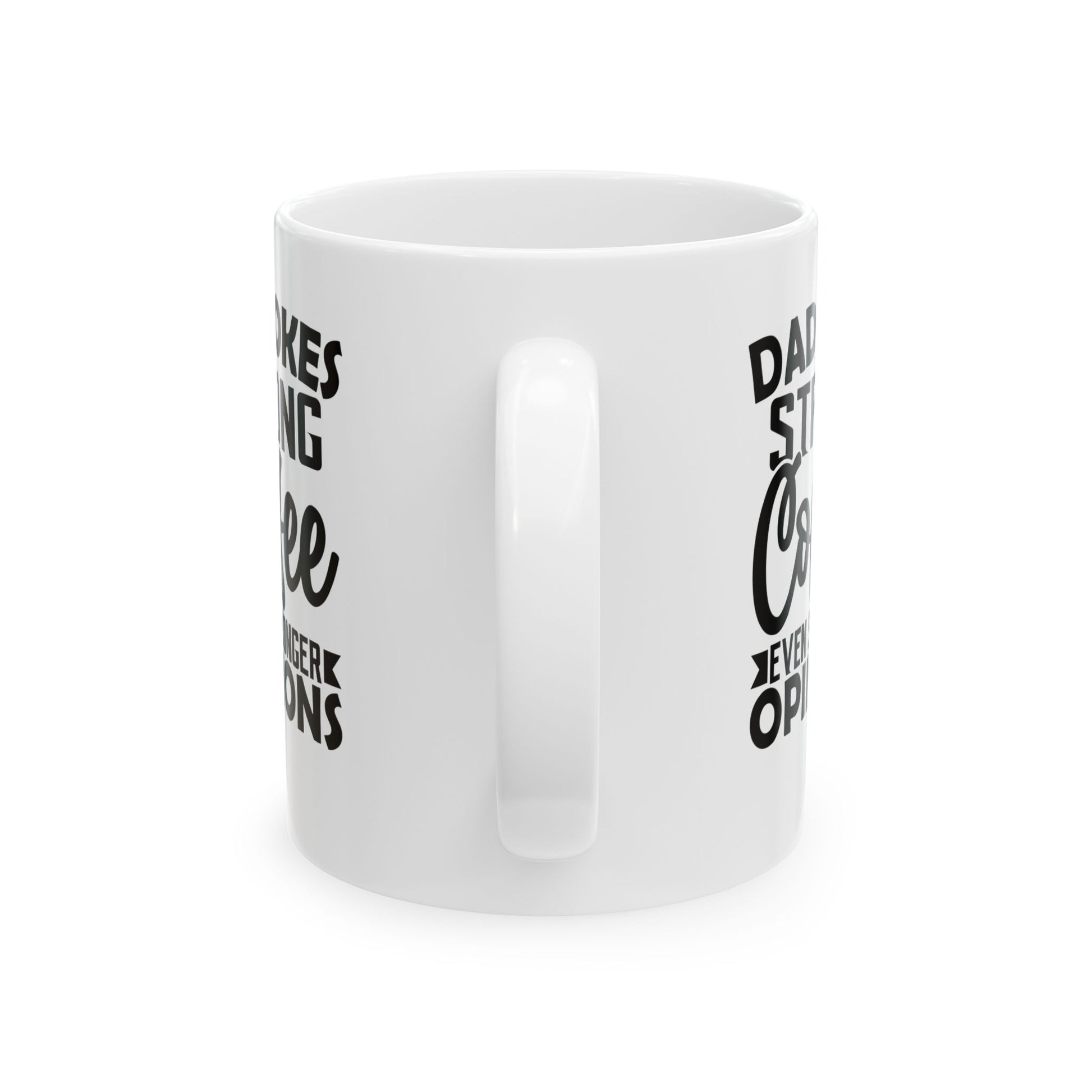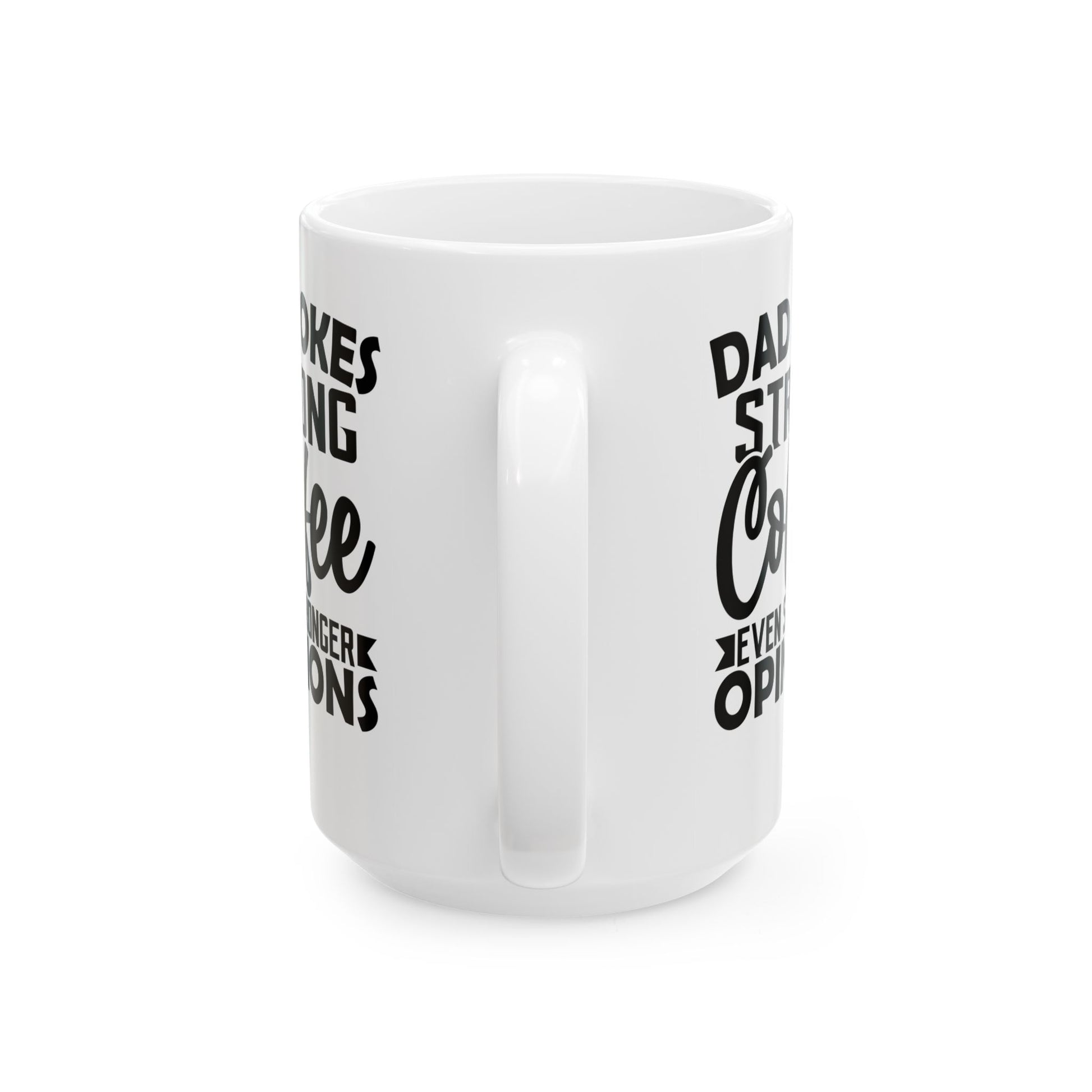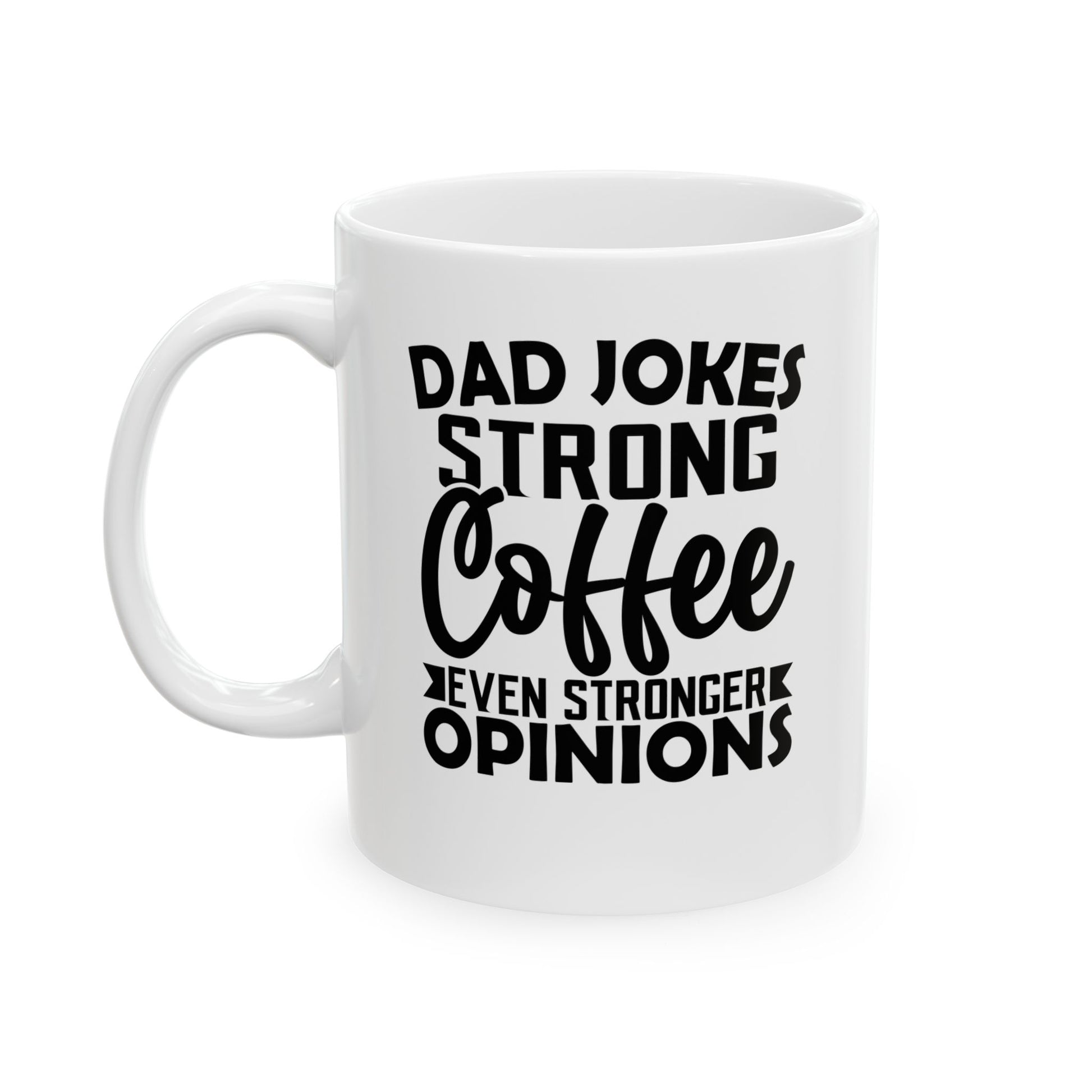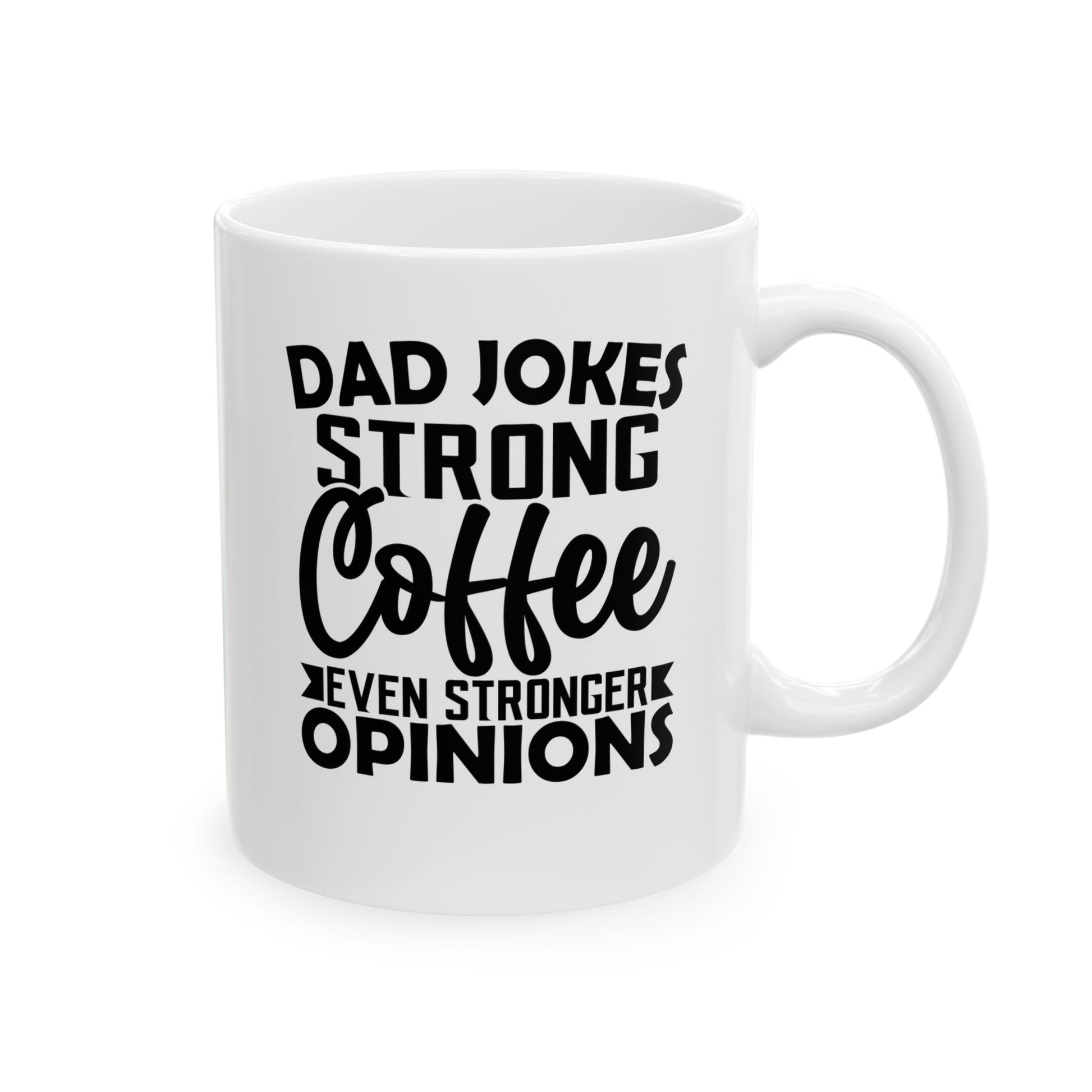 Dad Jokes Strong Coffee Even Stronger Opinions White Mug, (11oz, 15oz)