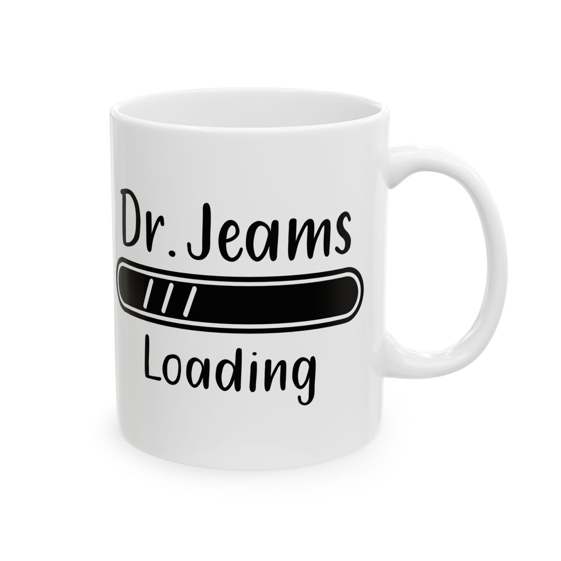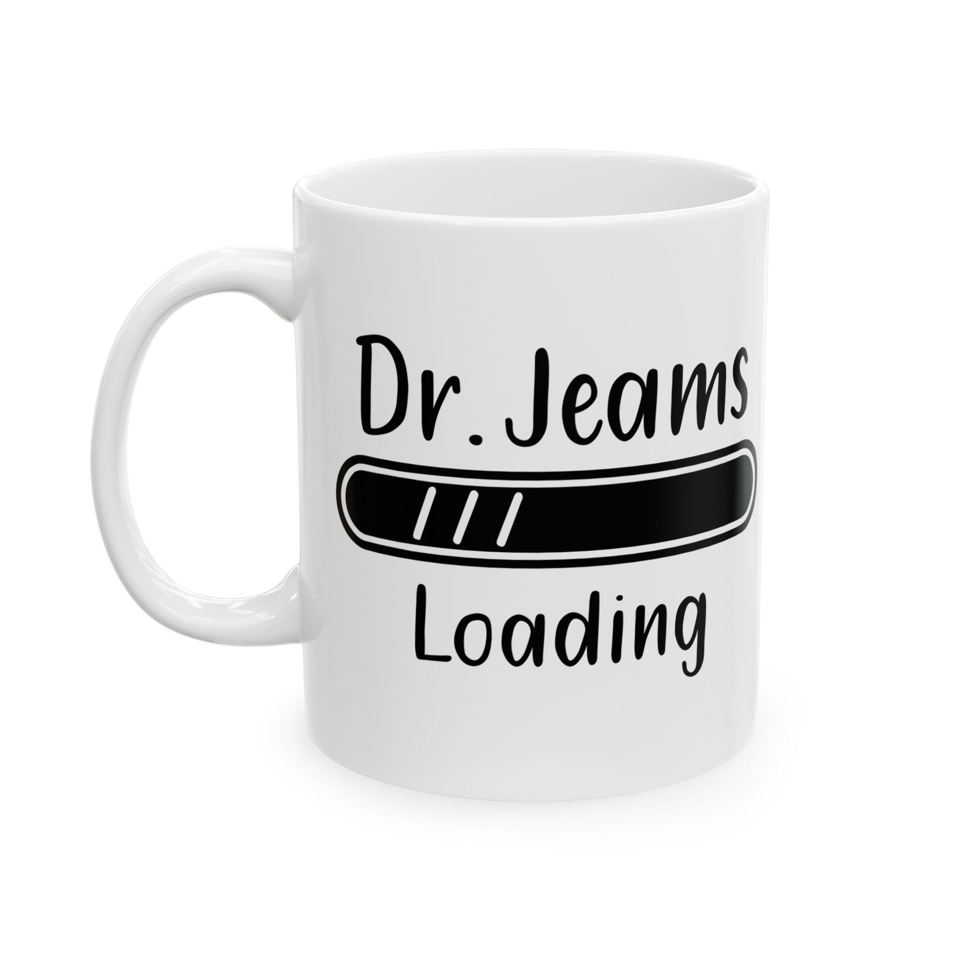 Fuel your dreams of becoming a doctor with this “Dr. Jeams Loading” white ceramic mug. Designed with a playful loading bar graphic, it’s the perfect reminder of progress through every exam, clinical, and study session. Whether it’s for a white coat ceremony or a med school milestone, this mug brings inspiration with every sip.