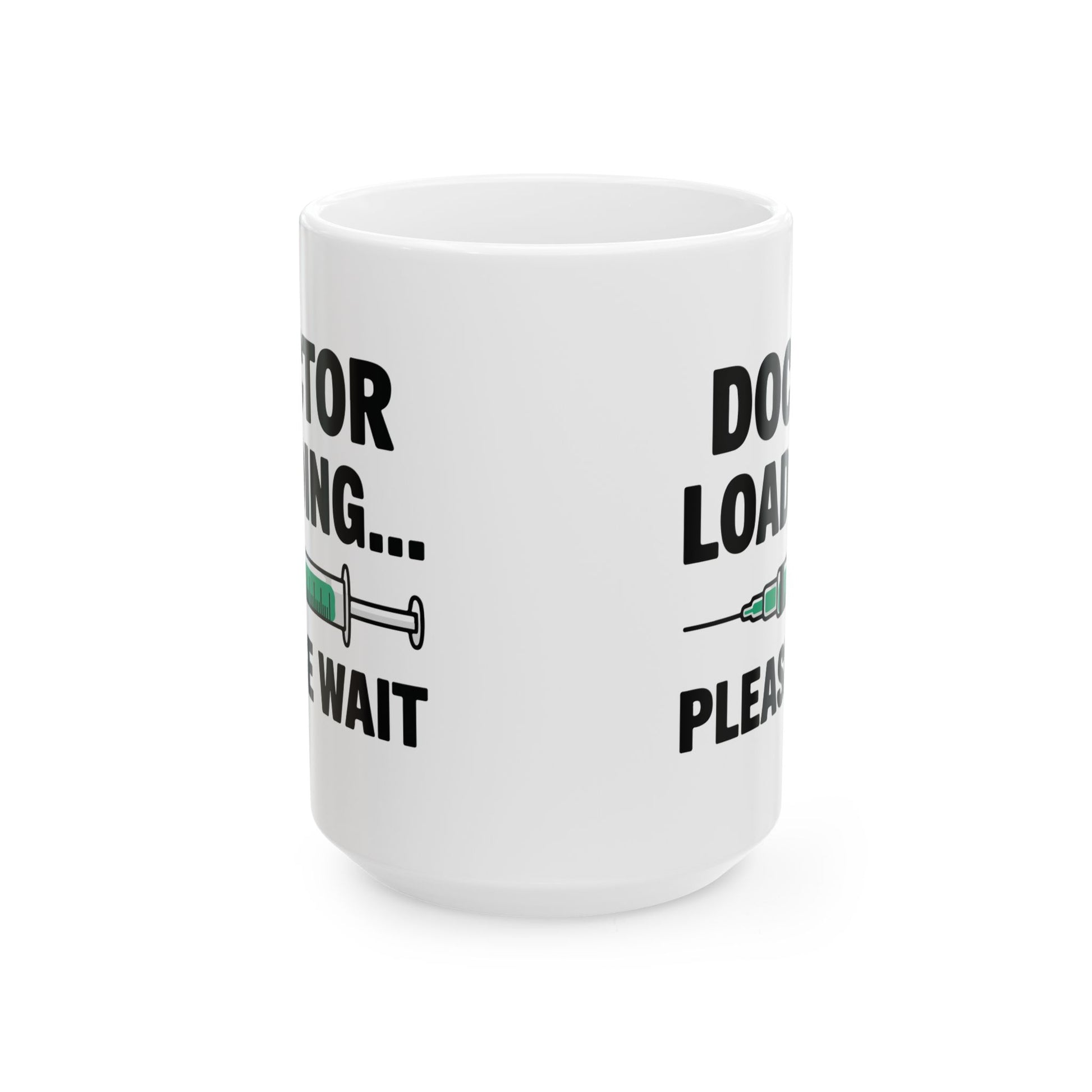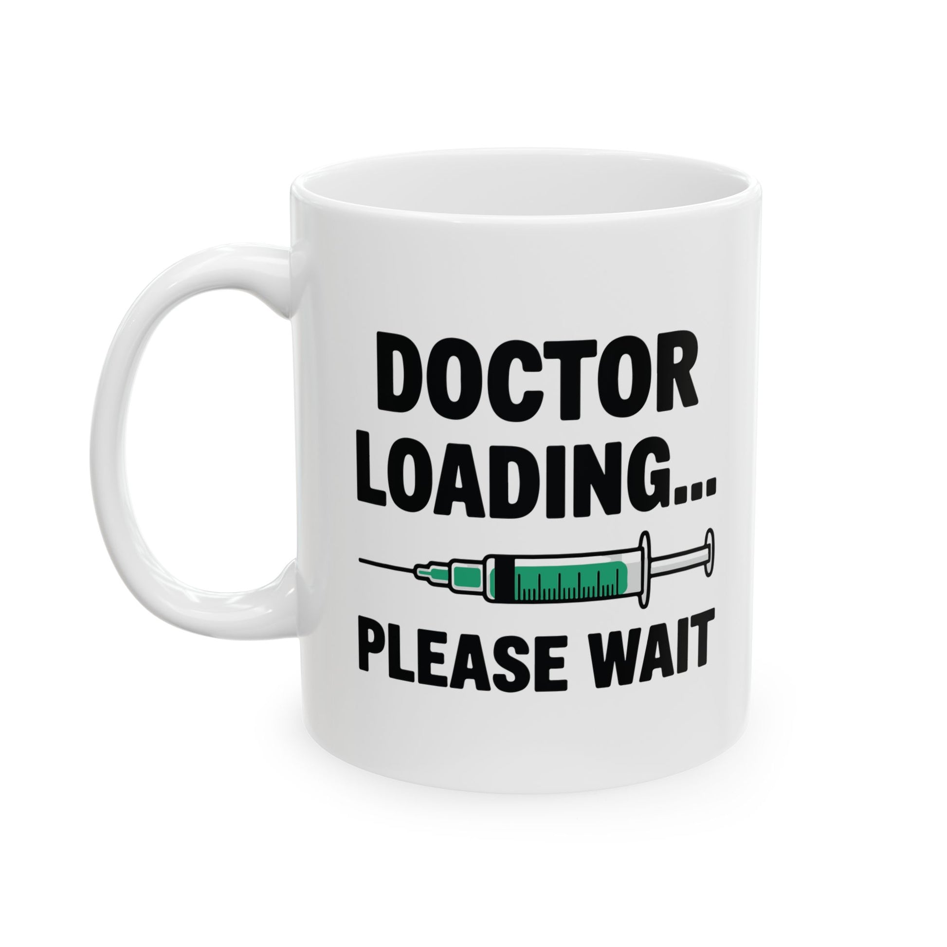 Brighten any med student's morning routine with this hilarious “Doctor Loading... Please Wait” white ceramic mug! Featuring a syringe illustration and bold text, this coffee cup is a fun and functional way to keep future doctors fueled through their journey.
