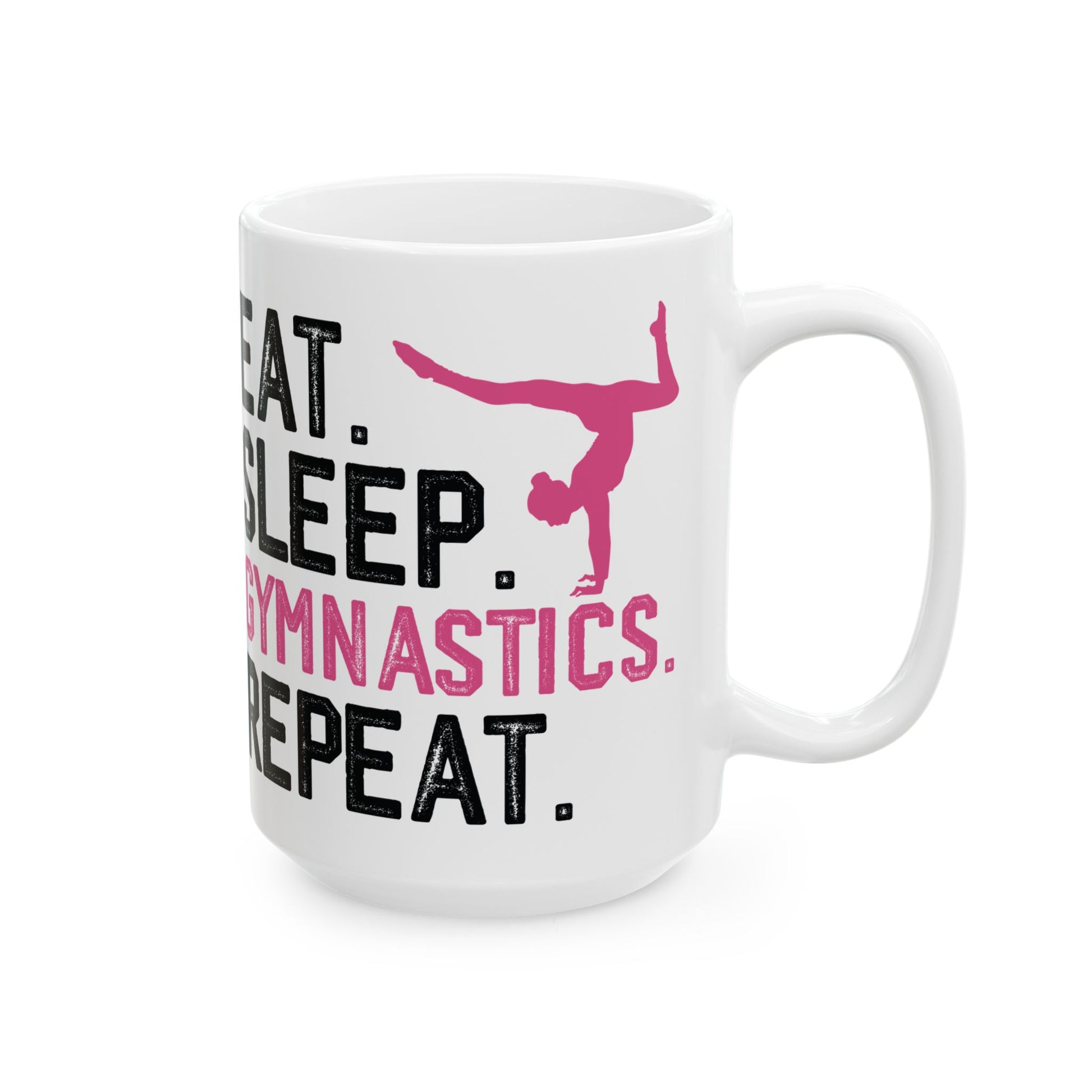 Eat Sleep Gymnastics Repeat White Mug, (11oz, 15oz)