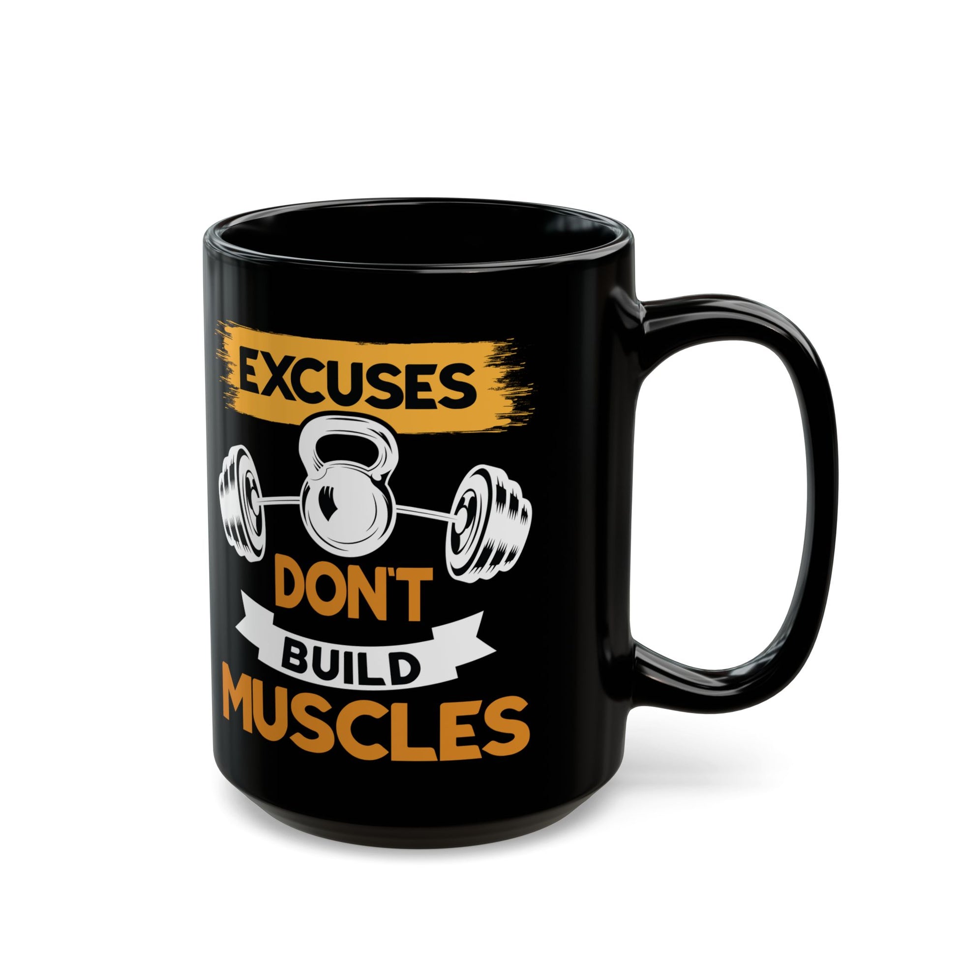 Excuses Don't Build Muscles Black Mug (11oz, 15oz)