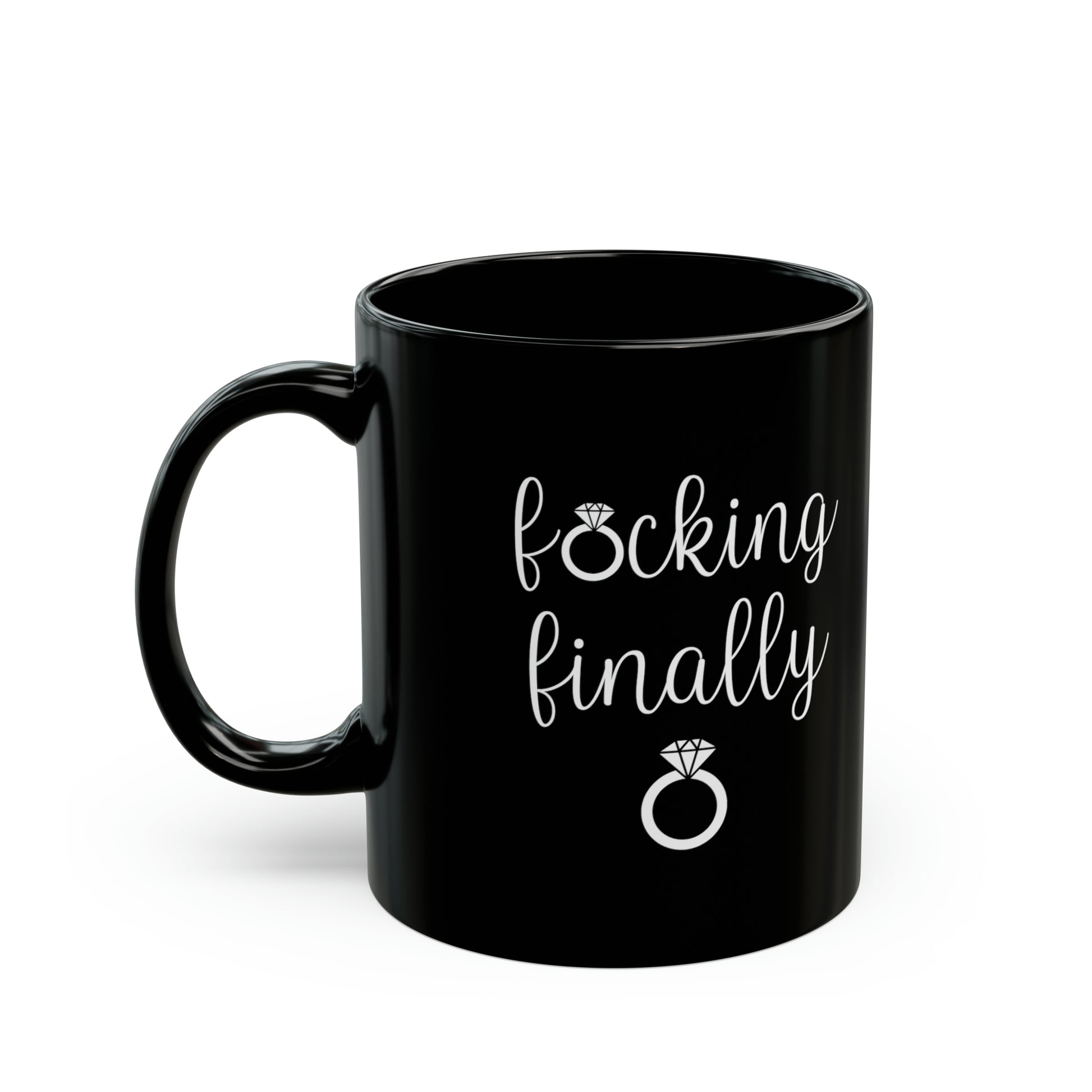 F*cking Finally Black Mug – Funny Engagement Coffee Mug