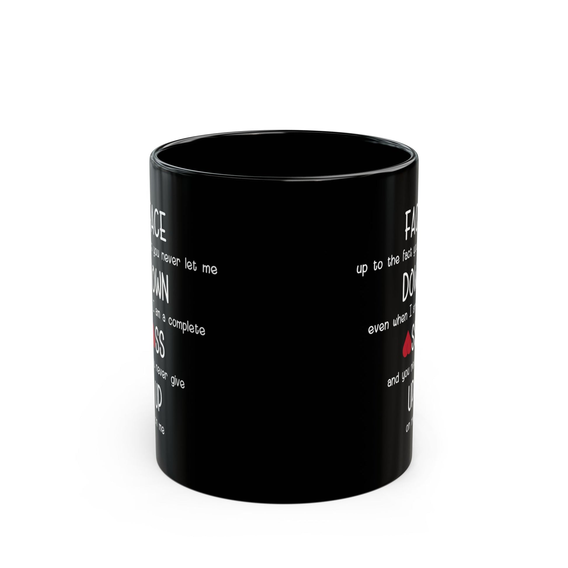 “FACE up to the fact you never let me DOWN even when I am a complete ♥SS and you never give UP on me.”