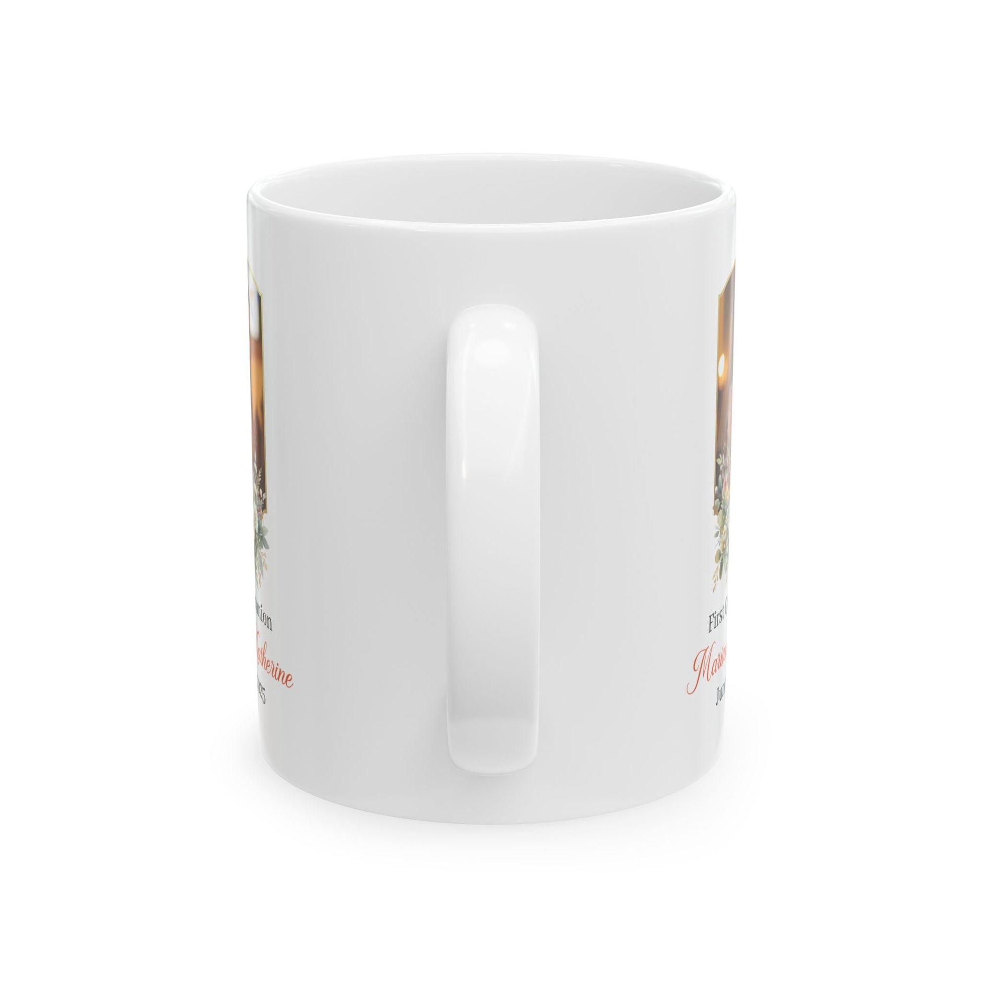 Celebrate a sacred milestone with this beautiful First Communion mug, featuring a custom photo, floral chalice design, and the name and date of the special occasion. A meaningful keepsake gift for daughters, goddaughters, nieces, or granddaughters celebrating their First Holy Communion.
