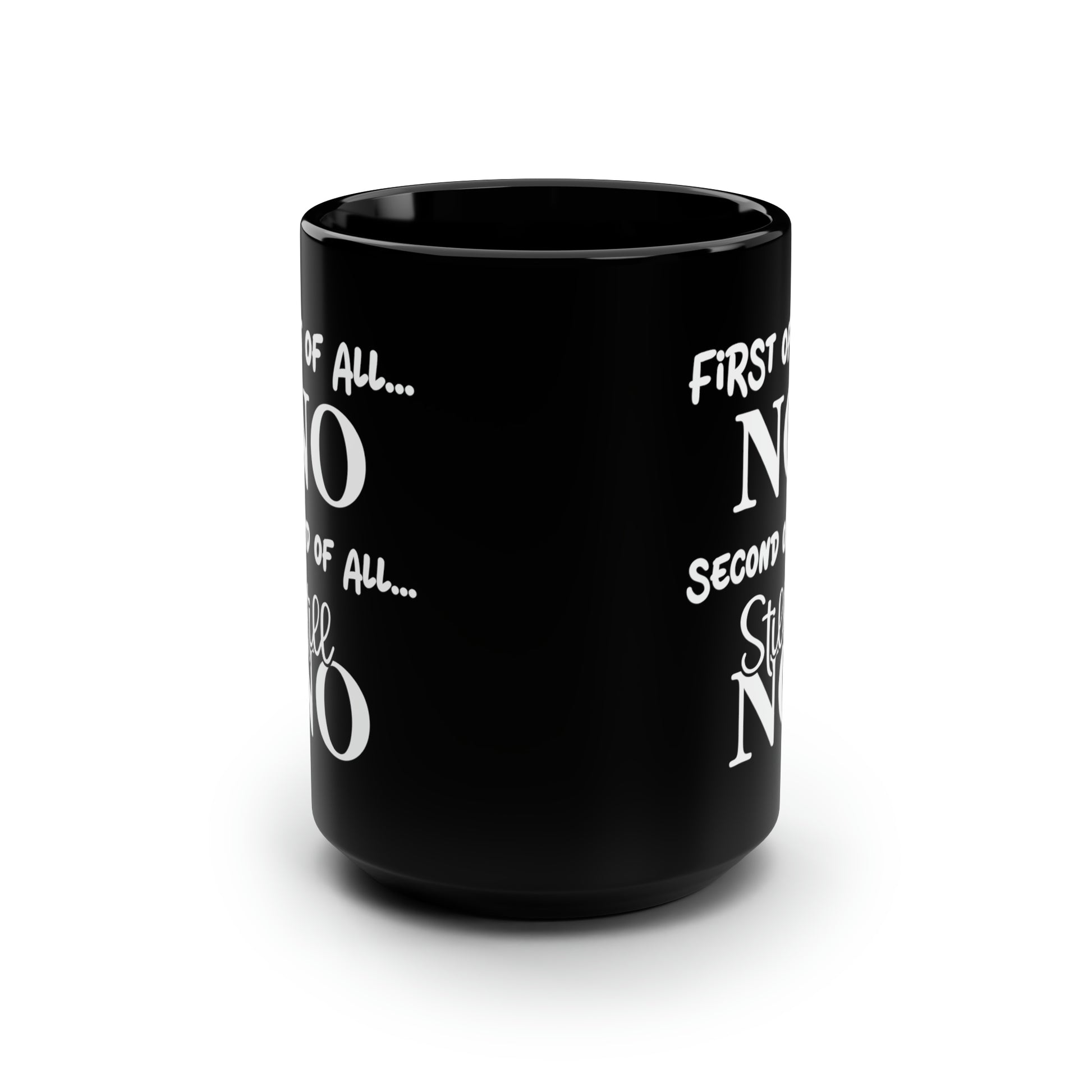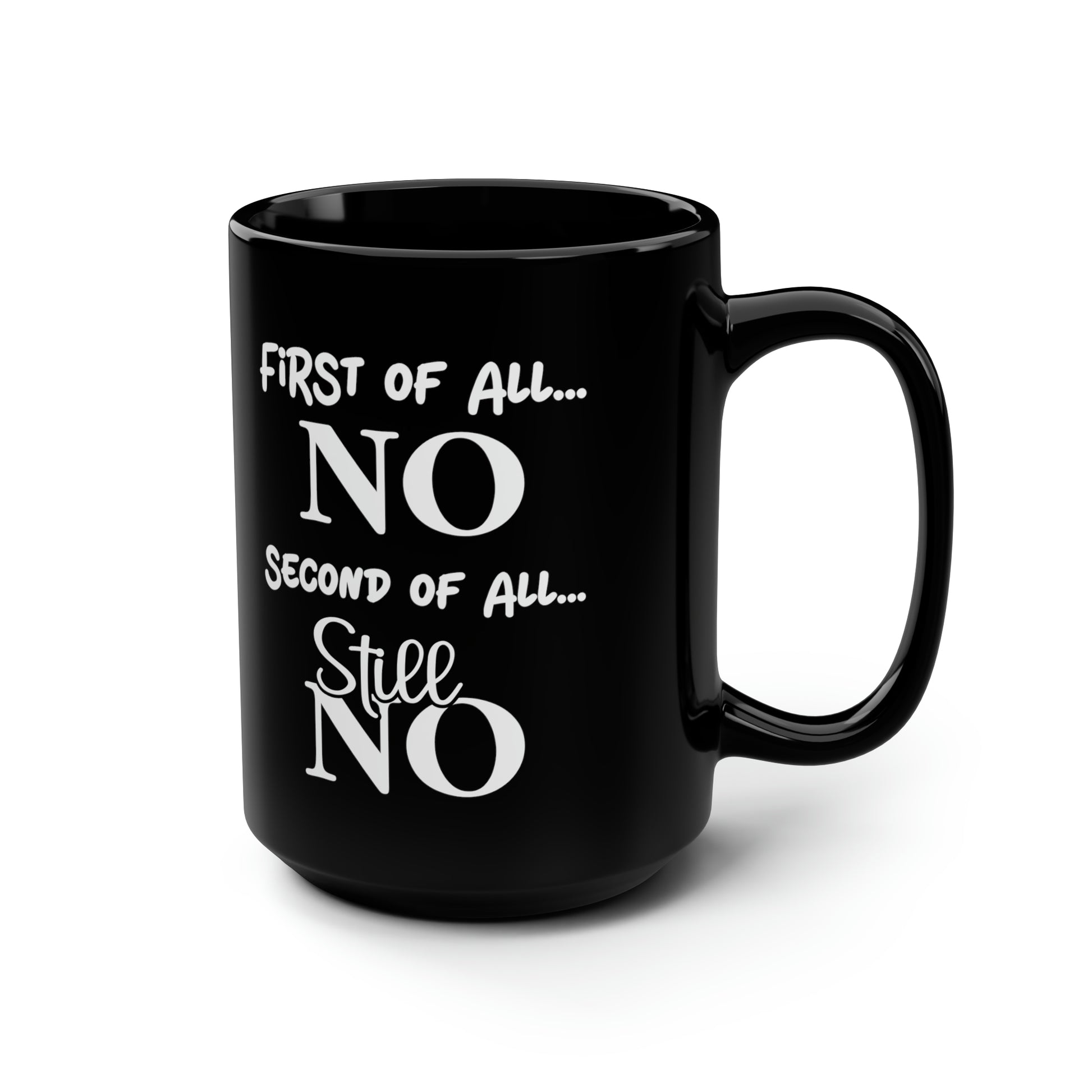 Perfect for those who aren’t afraid to express themselves, this "First of All... NO, Second of All... Still NO" mug makes a statement with every sip. Whether you’re looking for a hilarious gift or a personal pick-me-up, this bold, sassy mug is sure to catch attention. Ideal for coffee or tea lovers who enjoy a little humor with their caffeine fix.