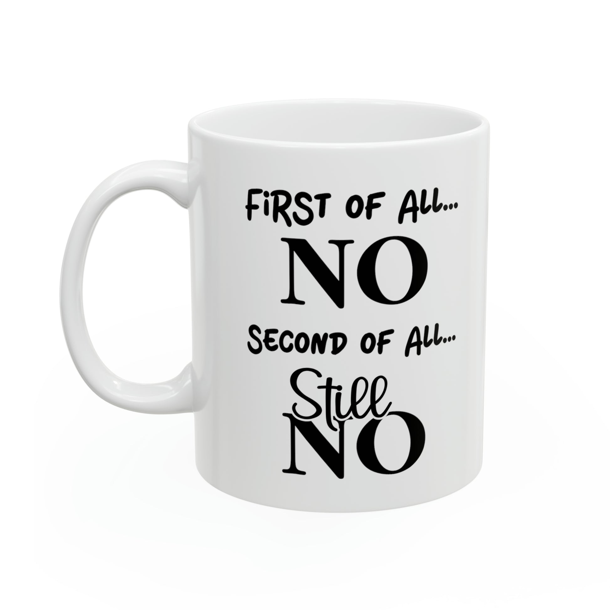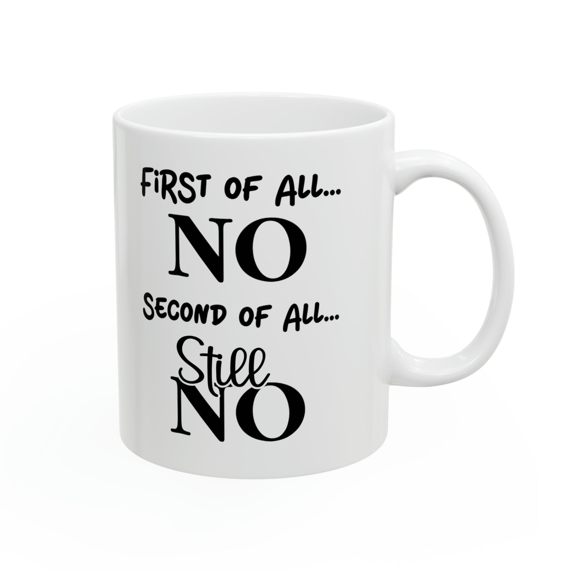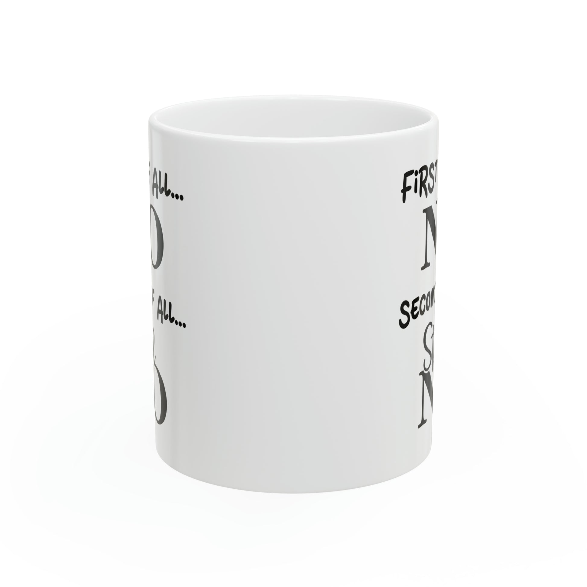 First of All, NO – Humorous Mug for Sassy Moments, Perfect for Coffee Lovers