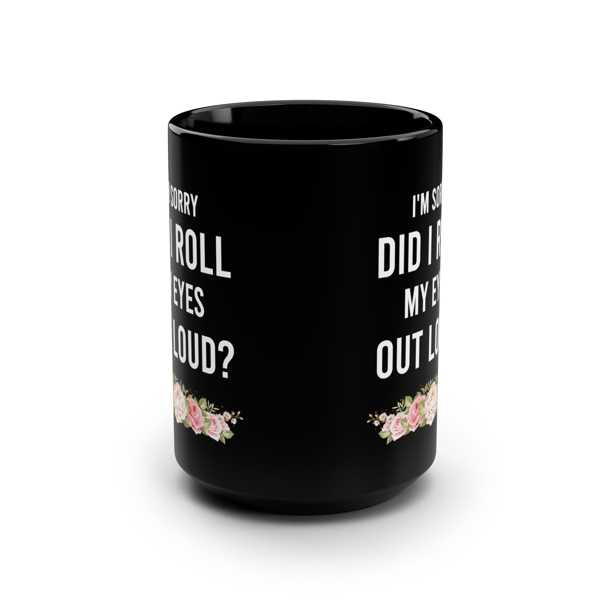 I'm Sorry Did I Roll My Eyes Out Loud? – Funny Black Coffee Mug with Floral Design