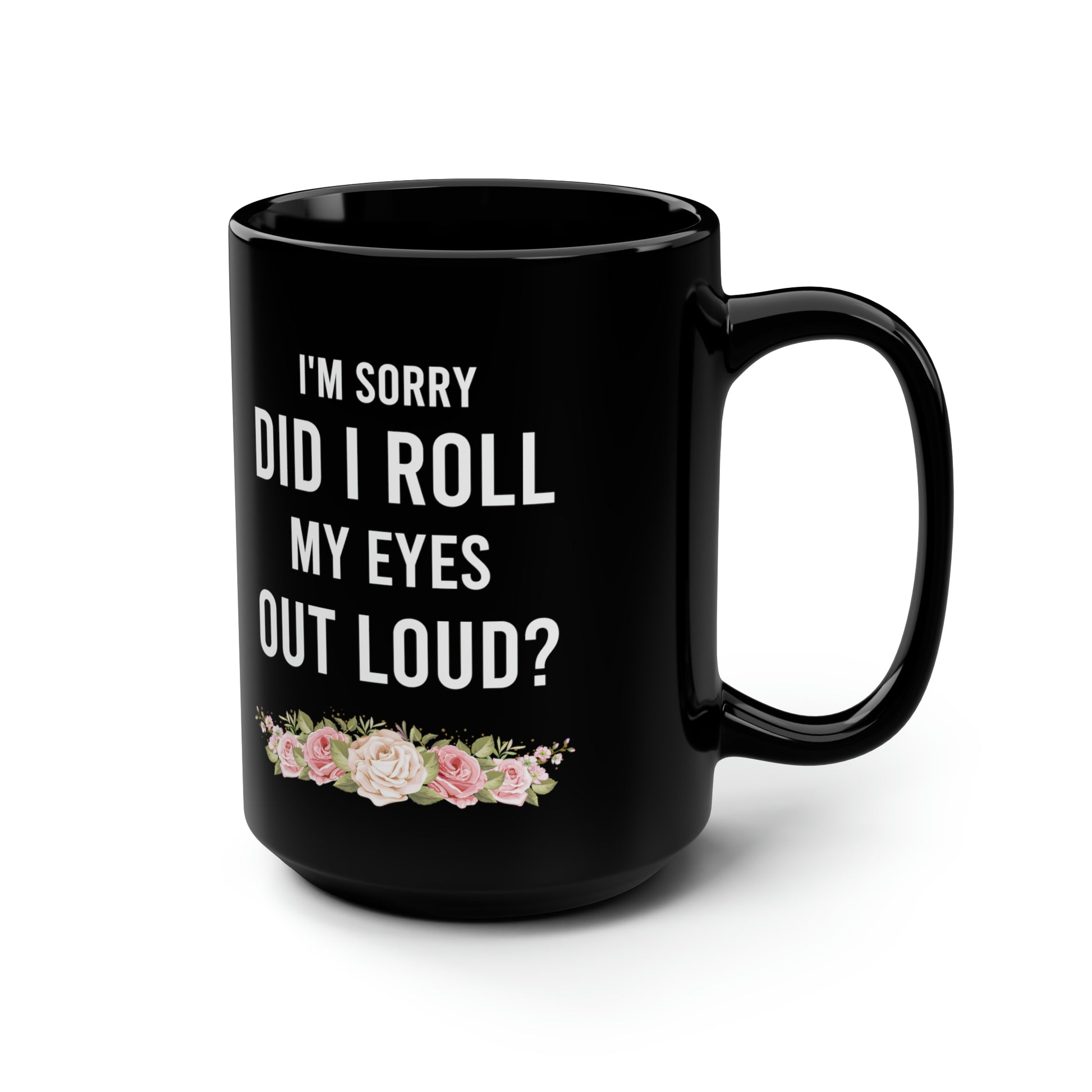 Express your inner sarcasm with this stylish "I'm Sorry Did I Roll My Eyes Out Loud?" black ceramic mug. Featuring an elegant floral accent, this mug is perfect for anyone who enjoys humor with their morning coffee or tea. Made with high-quality ceramic, it's great for home, office, or as a fun gift for friends, coworkers, or family members who appreciate a bit of attitude.