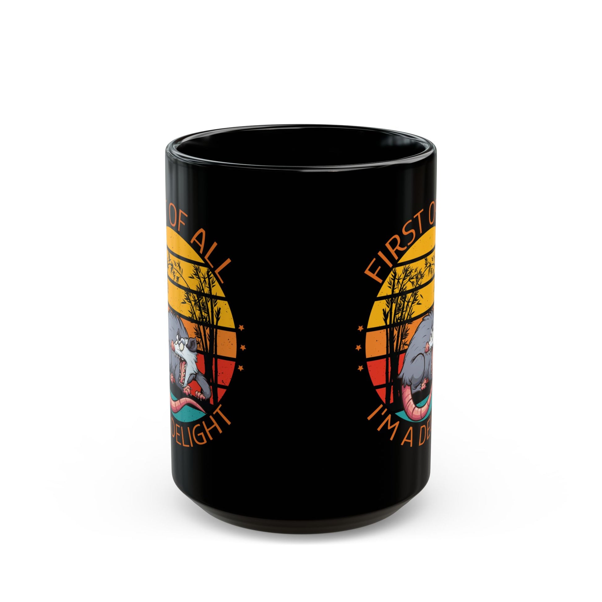 Funny Possum Mug – First of All I'm a Delight Cartoon Retro Black Coffee Cup for Animal Lovers